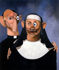 Compositionally, I noticed that your earlier portraits focus on a central figure. Of course, there is a major distortion within that figure. That is the irony, that sense of jest and mockery.